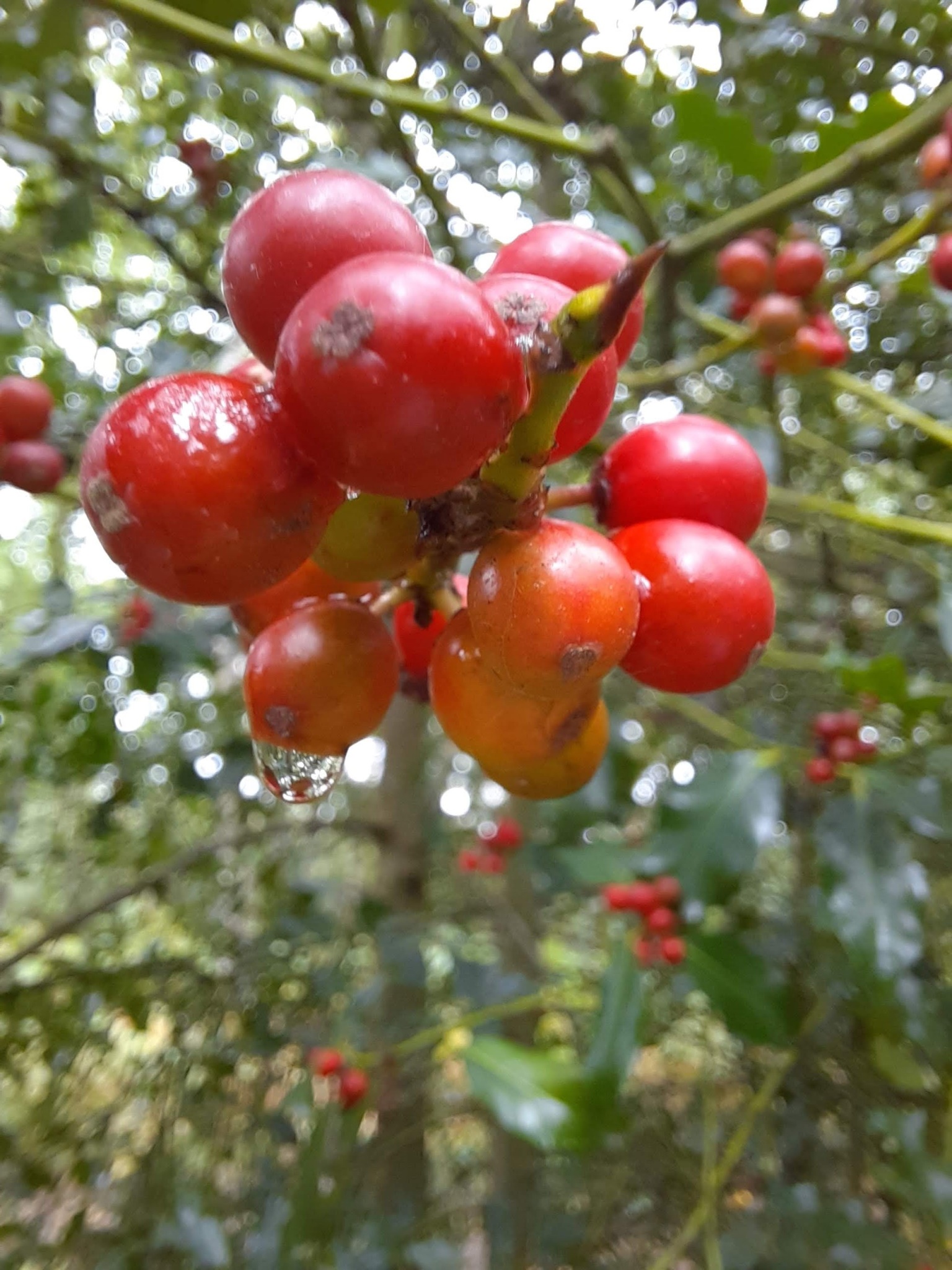 But there are other sources of colour. The green of evergreen trees still dominates vast portions of the woodland. The red of the holly berries and deep purple of blackberries act as barriers between the forest floor beyond and the winding well-trodden footpaths. Nearly every time I come here I often get lost, or discover a new path I did not know existed. Sometimes a path I have come to us regularly becomes overgrown and therefore unusable. It is labyrinthine in nature, except there is no minotaur for me to defeat, and my name is definitely not Theseus.